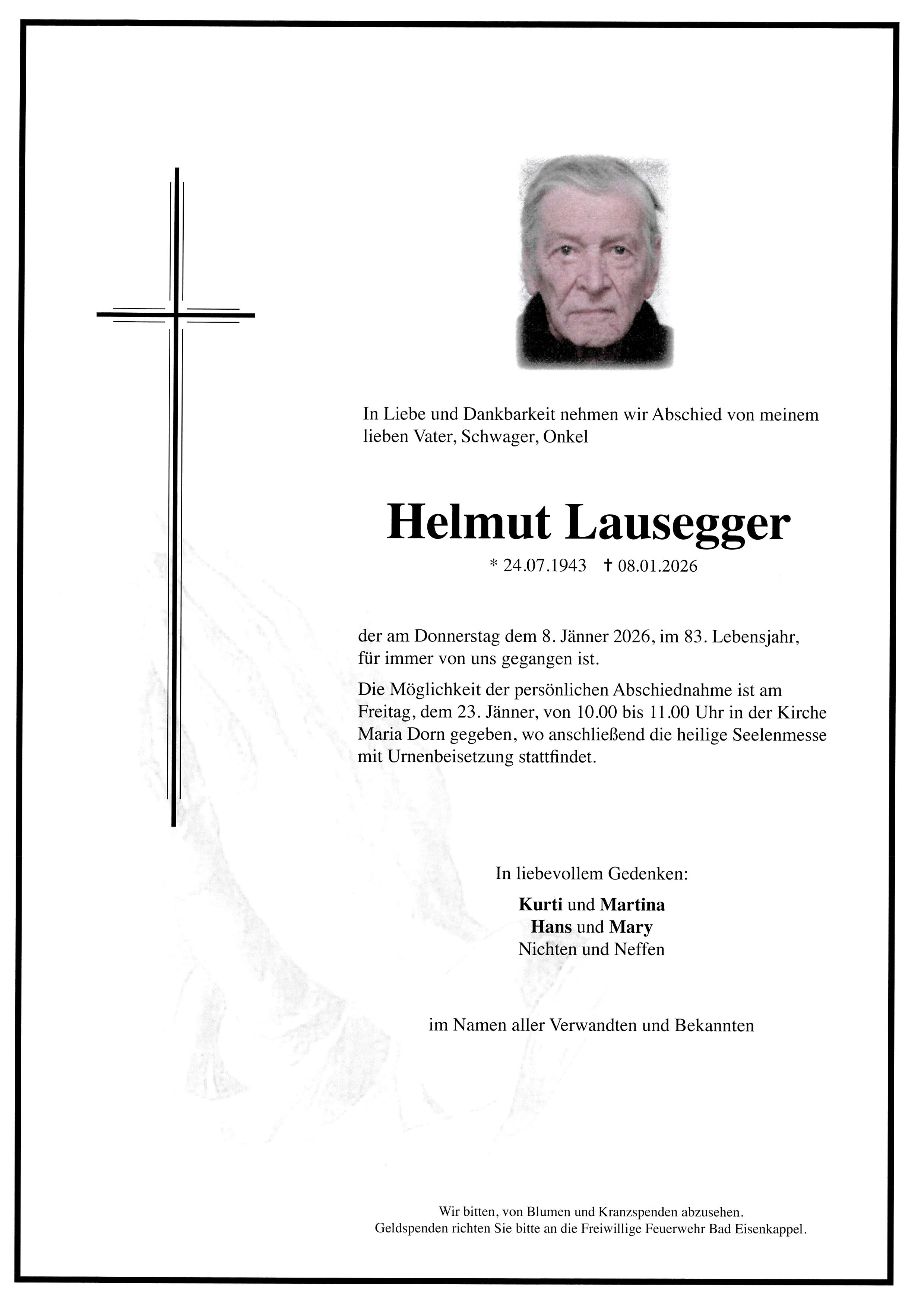 | 08.01.2026 | Sterbefall | Helmut Lausegger |