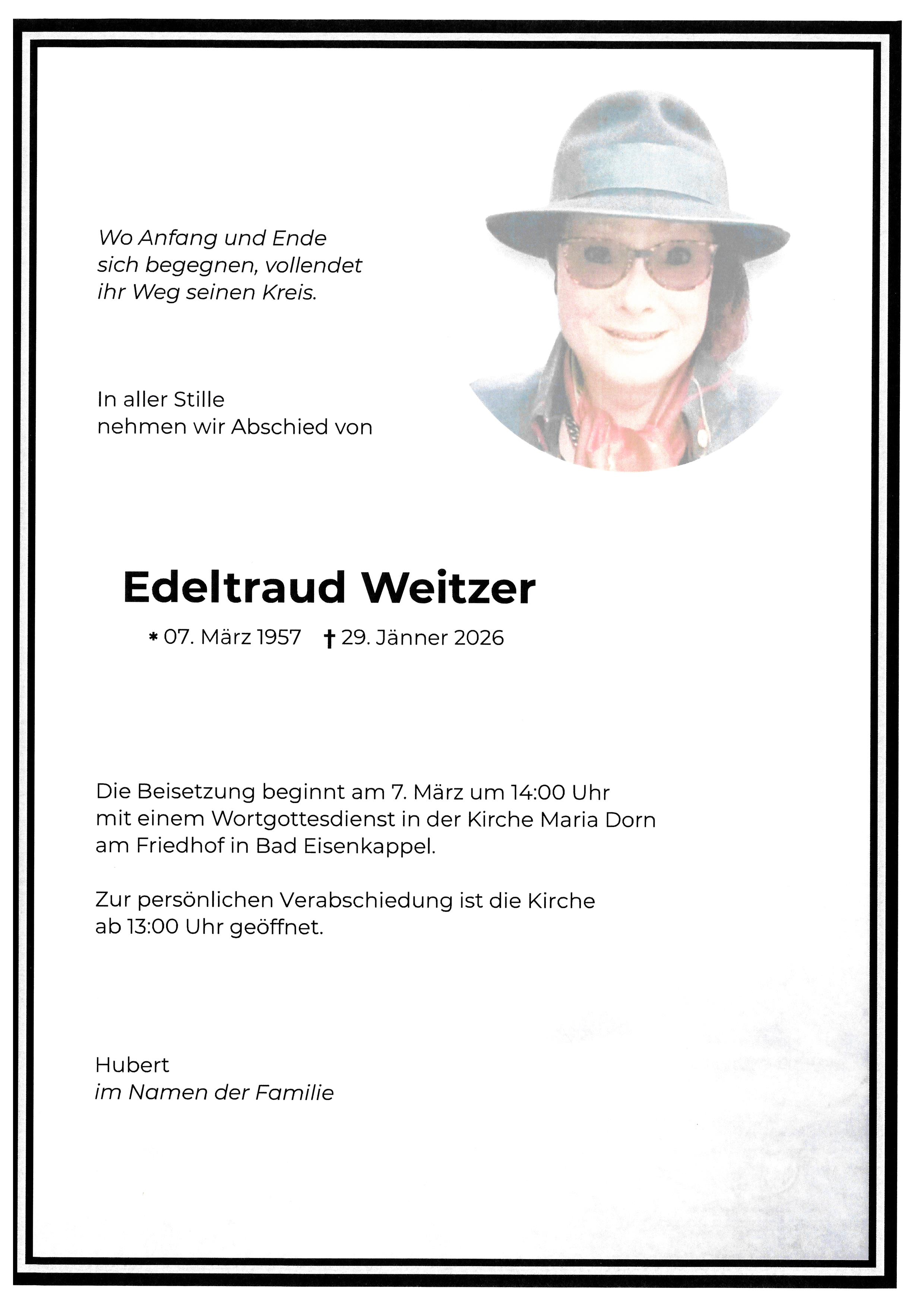 | 29.01.2026 | Sterbefall | Edeltraud Weitzer |