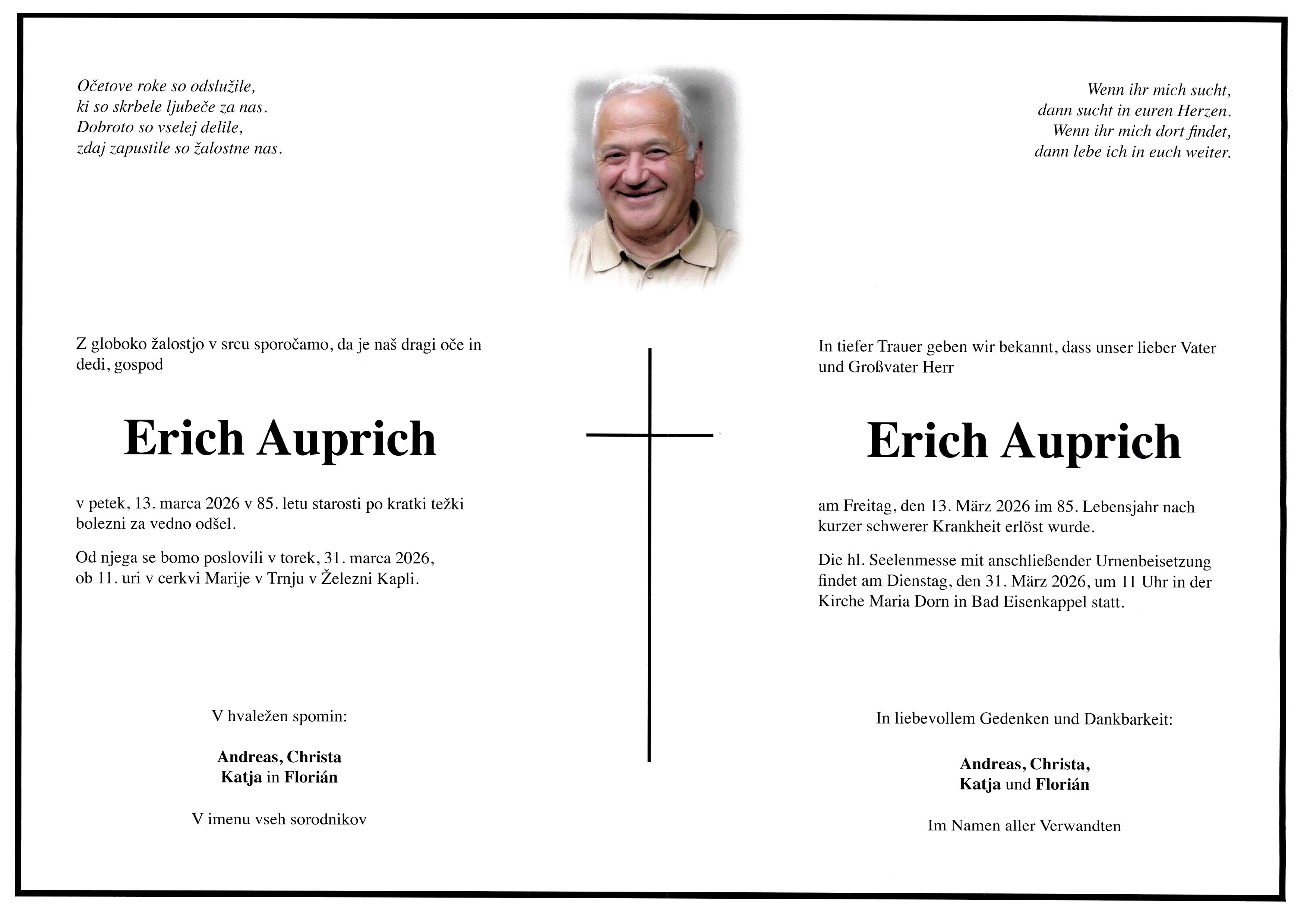 | 13.03.2026 | Sterbefall | Erich Auprich |