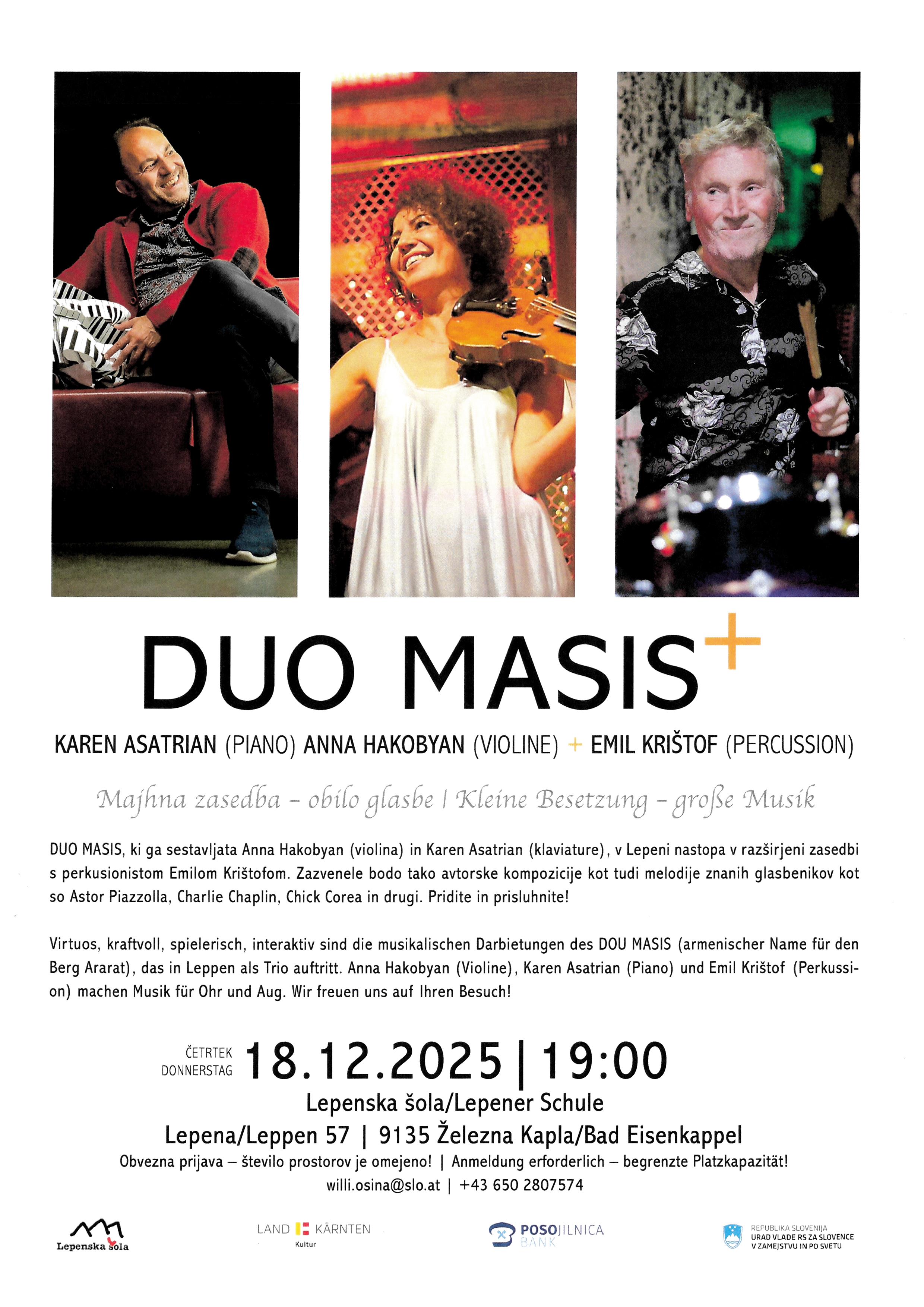 Karen Asatrian (Piano) Anna Hakobyan (Violine) Emil Krištof (Percussion)