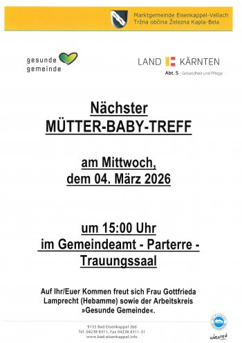 Auf Ihr/Euer Kommen freut sich Frau Gottfrieda Lamprecht (Hebamme) sowie der Arbeitskreis “Gesunde Gemeinde”.