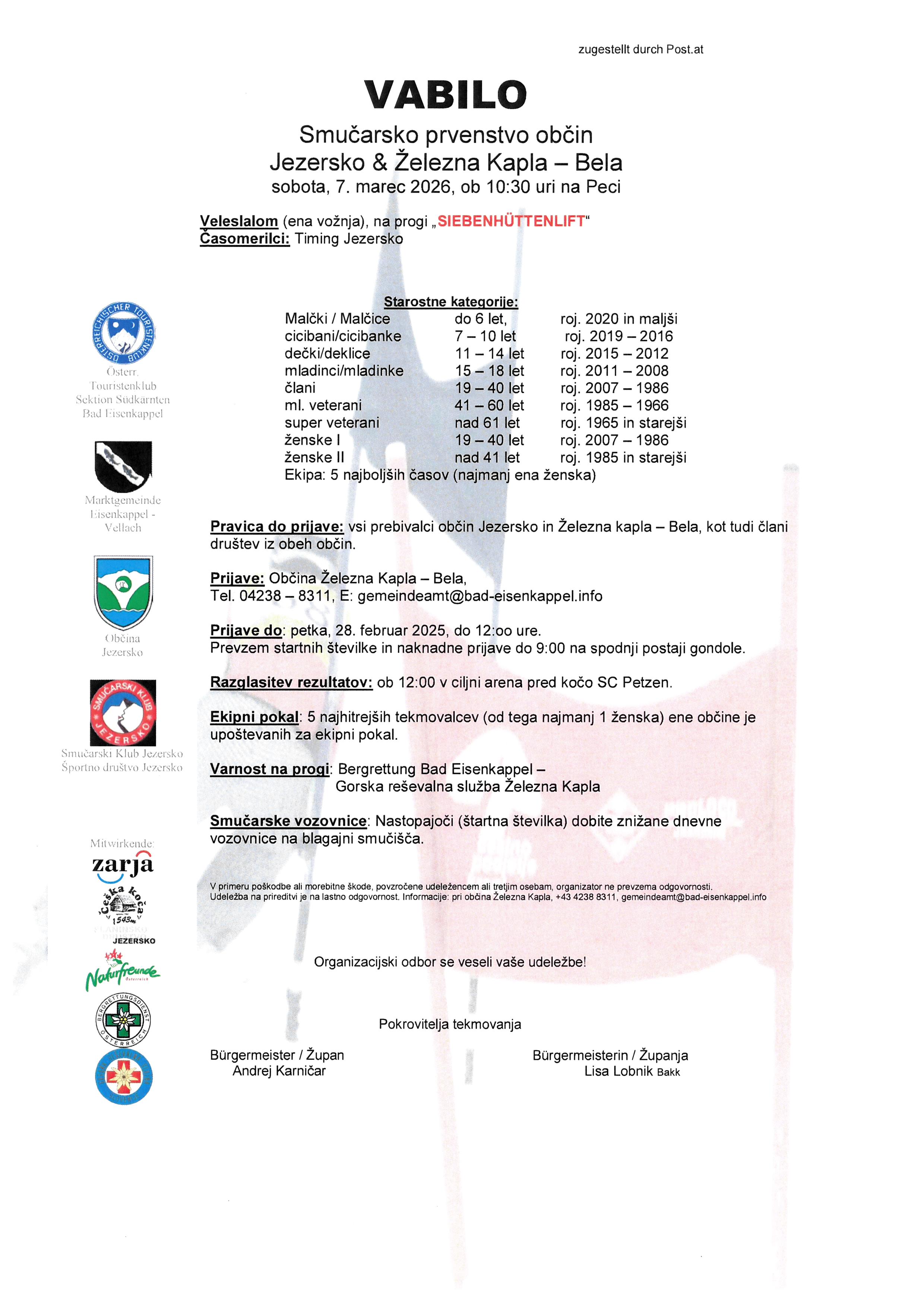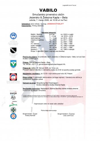 - Einladung/Vabilo Skimeisterschaft Jezersko & Eisenkappel-Vellach/Smučarsko prvenstvo občin Jezersko & Železna Kapla-Bela