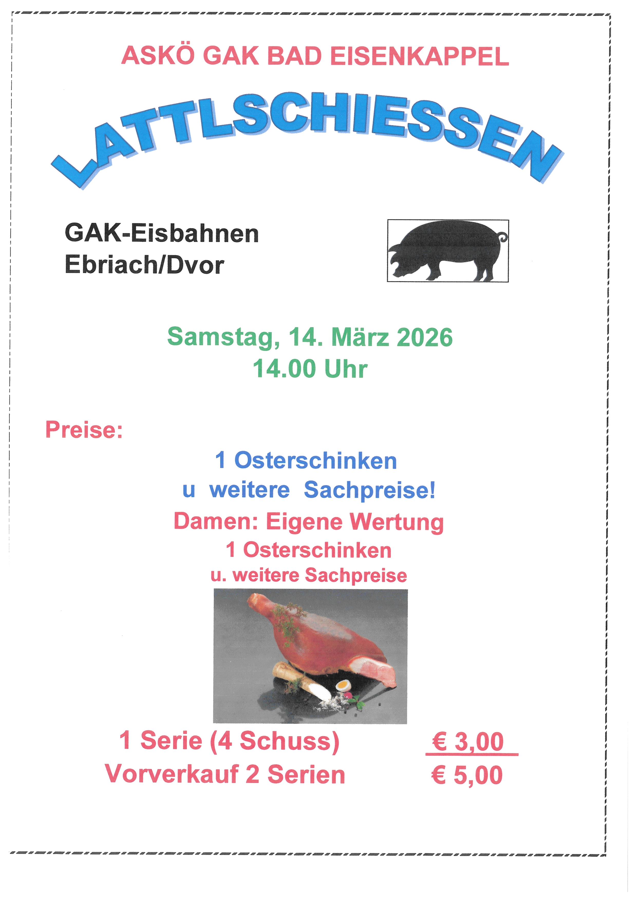 Preise: 1 Osterschinken u. weitere Sachpreise!