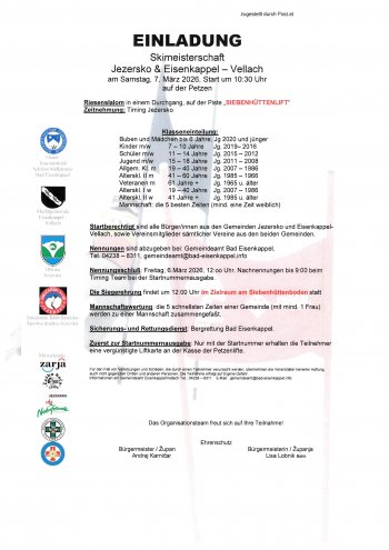 - Einladung/Vabilo Skimeisterschaft Jezersko & Eisenkappel-Vellach/Smučarsko prvenstvo občin Jezersko & Železna Kapla-Bela