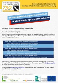 Parallel wurden zum Thema 750 Jahre Markt Eisenkappel viele Gedanken, Projektideen und konkrete Veranstaltungen gesammelt. Gesamt sind sagenhafte 108 Einträge zusammengekommen. Diese wurden bereits im Kernteam im Detail auf deren Umsetzbarkeit, Wichtigkeit bzw. Priorität und deren Auswirkung wie auch Nachhaltigkeit besprochen.