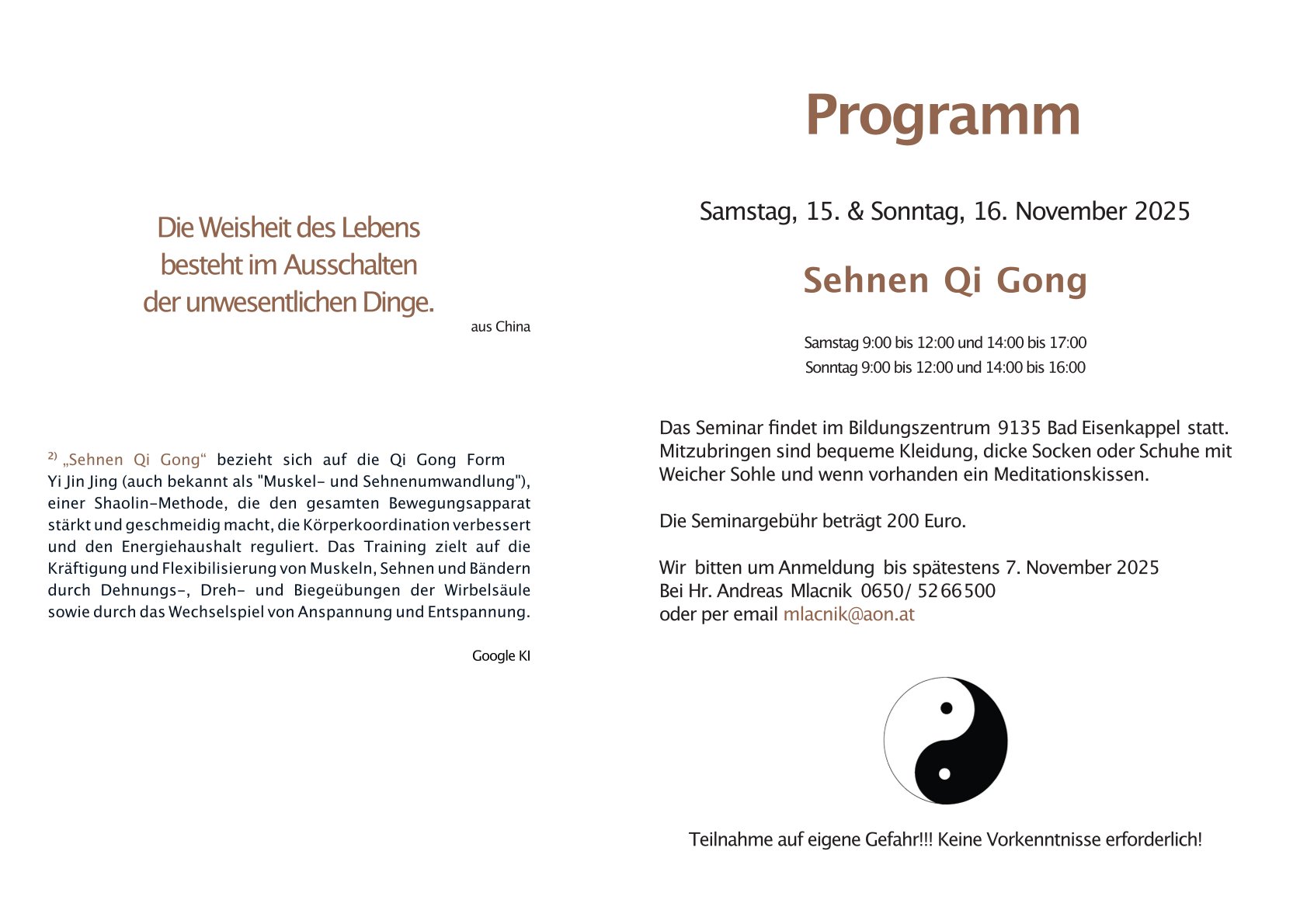 Sehnen Qi Gong“ bezieht sich auf die Qi Gong Form